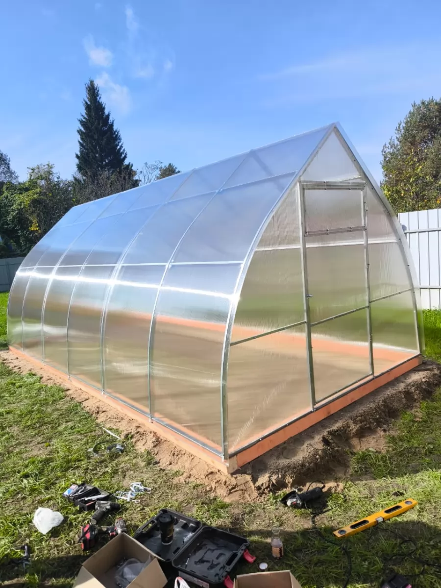 «Всё прошло отлично. Каркас прочный, профиль крепкий. Весной останется только открыть двери и сажать. Очень удобно, что купили в межсезонье — спокойно, без очередей.»