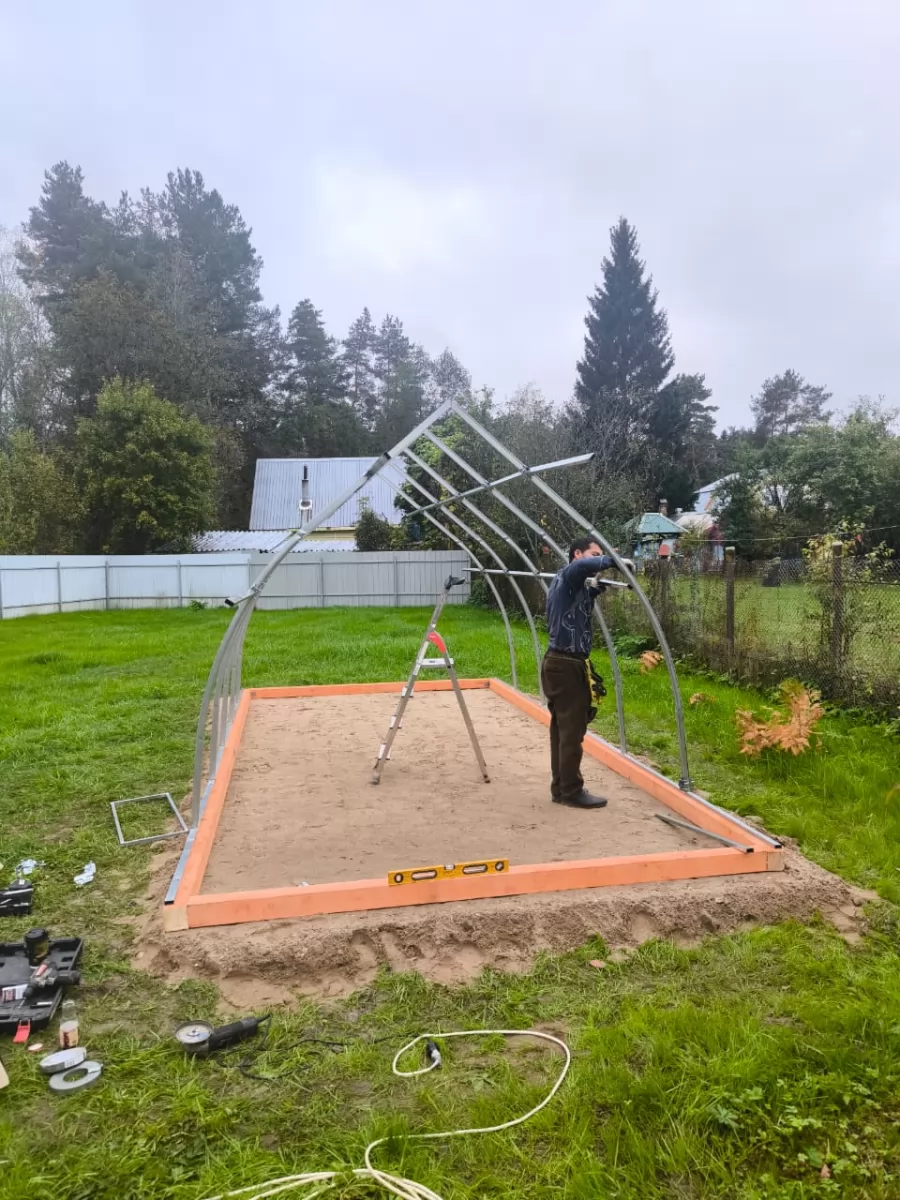 «Хотел купить весной, но увидел акции по осени и не пожалел. Ночи уже прохладные, но установка прошла спокойно. Установили за день, всё ровно и надёжно. Уже начал заносить почву и готовить грядки. Каркас крепкий, видно, что надолго. Очень рад, что подготовился заранее — теперь без весенней суеты!»